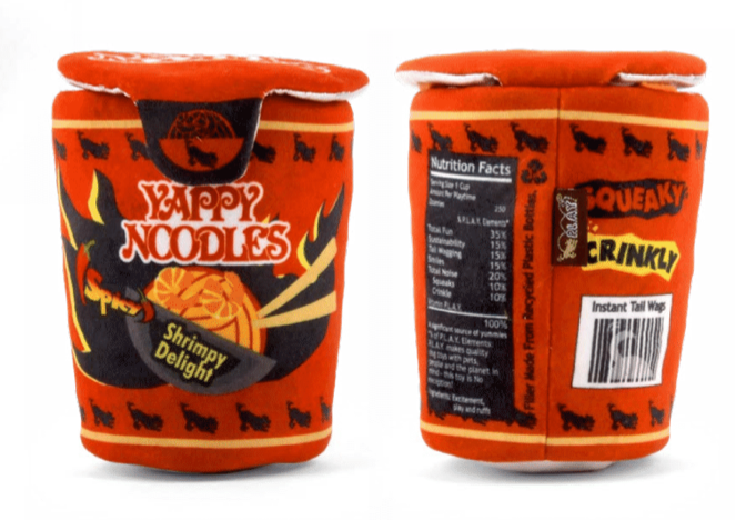 Izbaudiet un pasniedzit savam sunim karstu jautrību ar P.L.A.Y. straptautiski klasisko ēdienu Nūdeļu bļodu. Šī plīša rotaļlieta ir pārāk mīlīga un rotaļīga, lai turētu to plauktā. Traukā iestrādāts pīkstulis un tas patīkami čaukst, un tās nūdeles! - tik daudz mīkstu filca nūdeļu, kuras raustīt, mētāt, vilkt un kutināt purniņu. Paceliet Nūdeļu bļodas vāku un atklājiet šīs mantas vilinošo burvību. Šī mantas burvība paildzinās, ja bļodā papildus tiek paslēpts kād jūsu mīļā drauga kārums. Manta piemērota lieliem un vidējiem suņiem. Manta veicina sensorisko jūtību, barības meklēšanu, vilkšanu un mētāšanu. Nūdeļu bļodas augstums 12 cm.